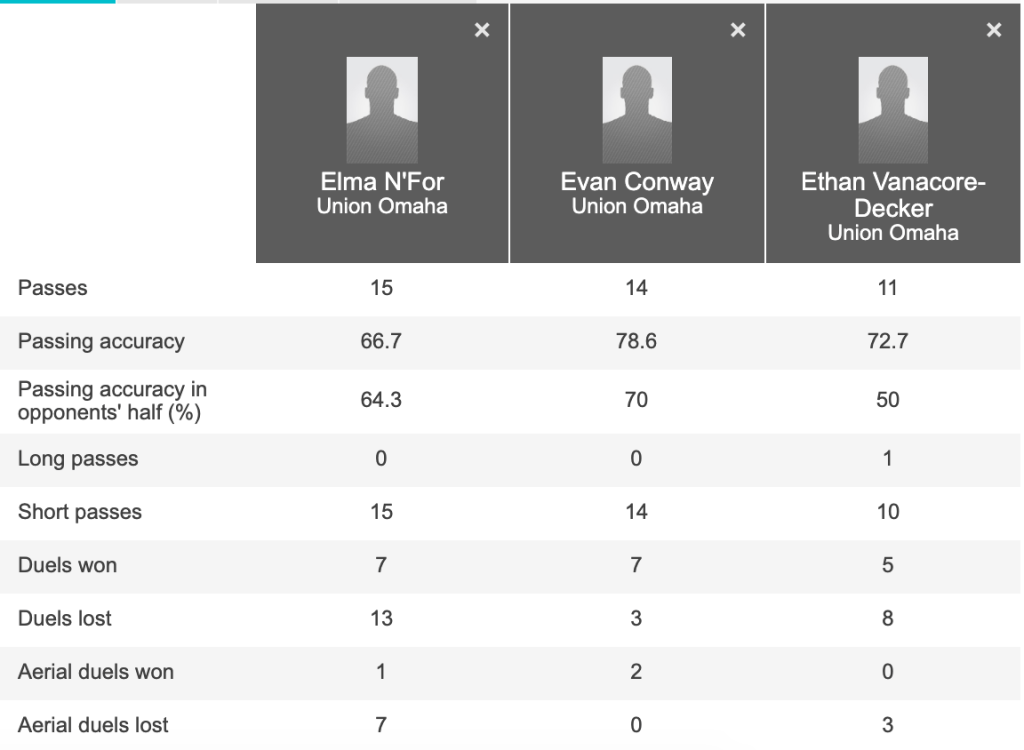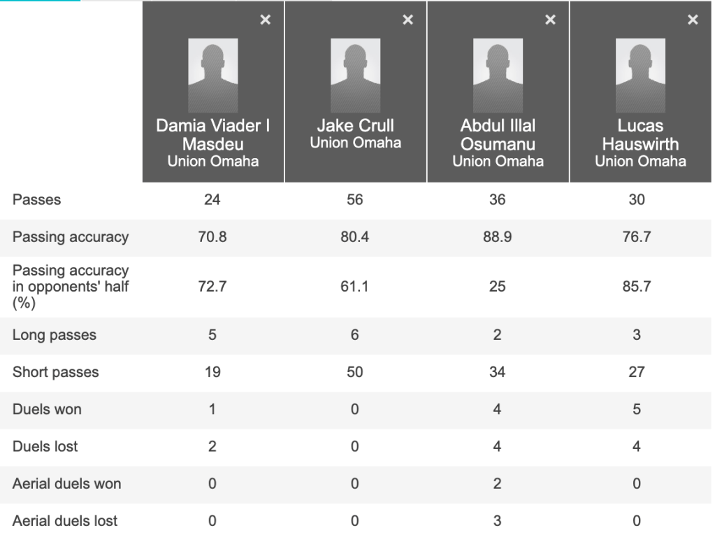 And compare them to our wide midfield players (Evan Conway, Sebastián Contreras, Austin Panchot, Christian Molina):