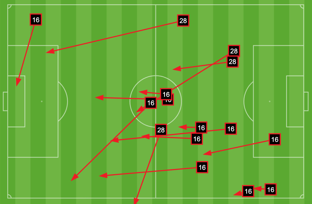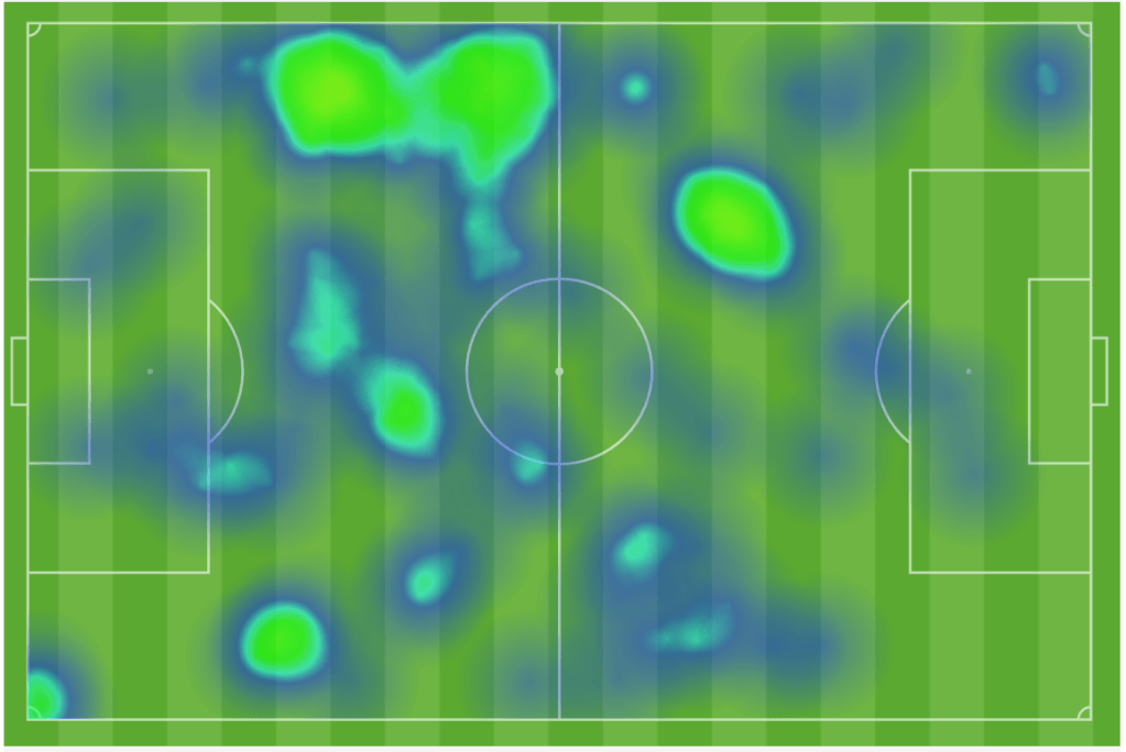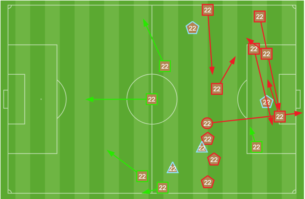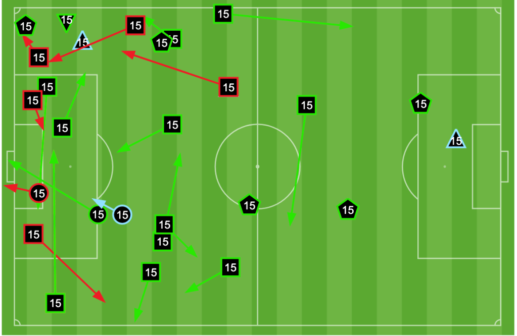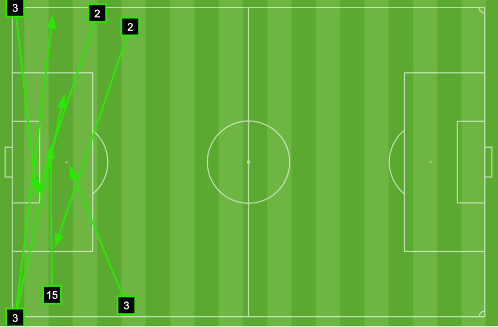We can also see that our center backs were successful in completing passes in areas where turnovers would be disastrous.