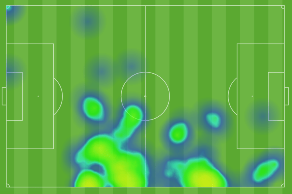 Now that you have a clear sense of where Dami roams as our left back, let’s look at Illal’s heat map.