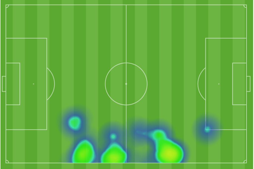 The first half heat map for our starting center backs look like our standard center back heat maps. Let’s check out the second half.