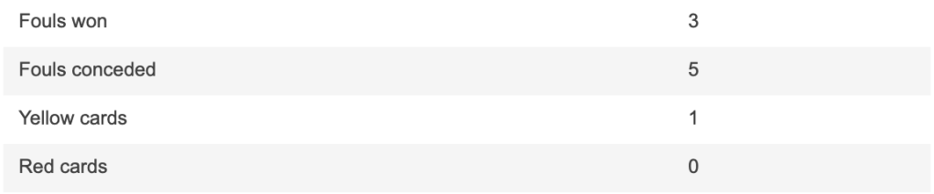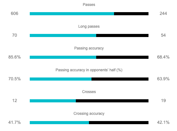 Oh man, I do love a game where we have 30% possession, but it feels like we dominated and only didn’t win in a blowout because of bad refereeing. Look at these numbers.