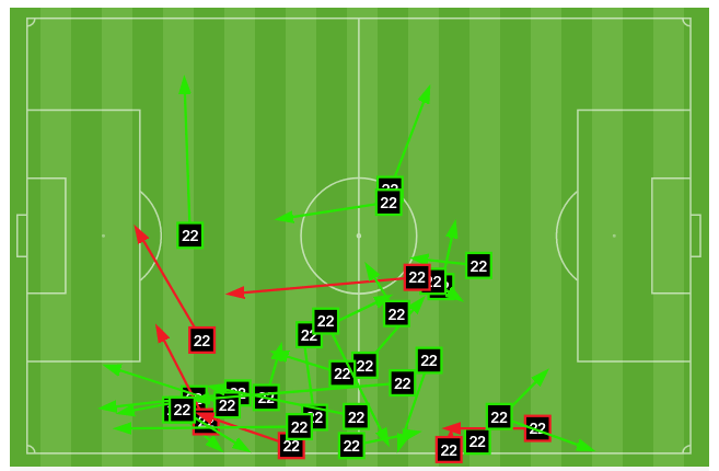 He’s not perfect with the ball, those two turnovers on short passes deep in our own half stand out as less than ideal. But the other four passes that were not completed all are clearly attack minded. Which is great!