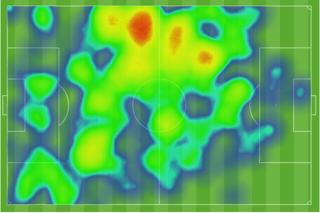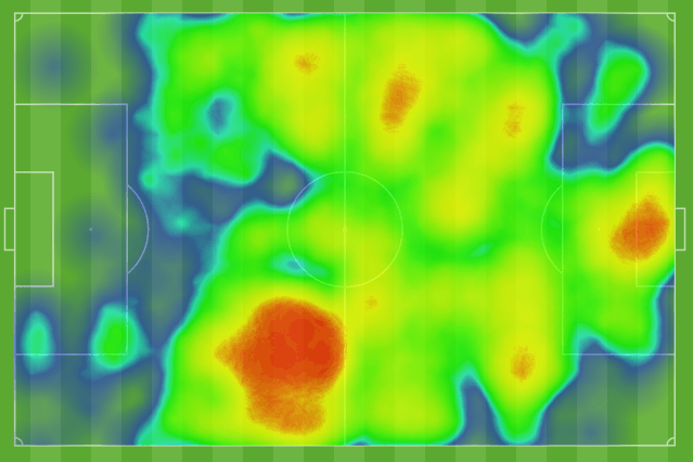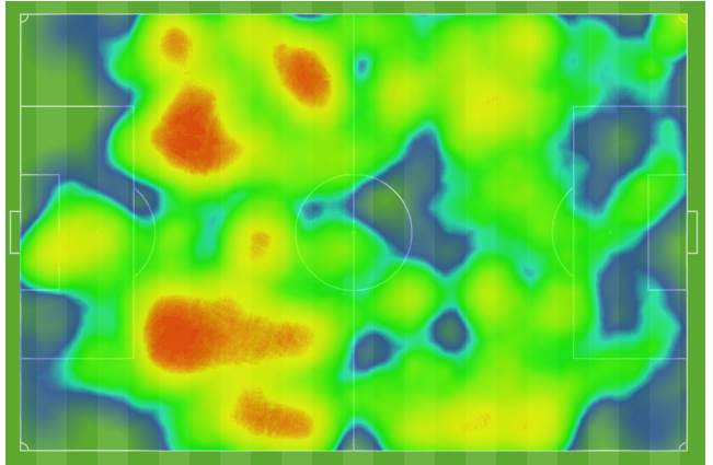 What a great representation of the flow of the game. We basically created no chances, nothing even above 0.05 xG, in the 1st half. Madison had one spell of pressure in the 2nd half when they got their goal, and then we dominated chances for the rest of the game with extreme pressure at the end. Madison was still the better team by the overall xG metric, but if that isn’t a slow start, I don’t know what is! Possession heatmaps back this up as well.