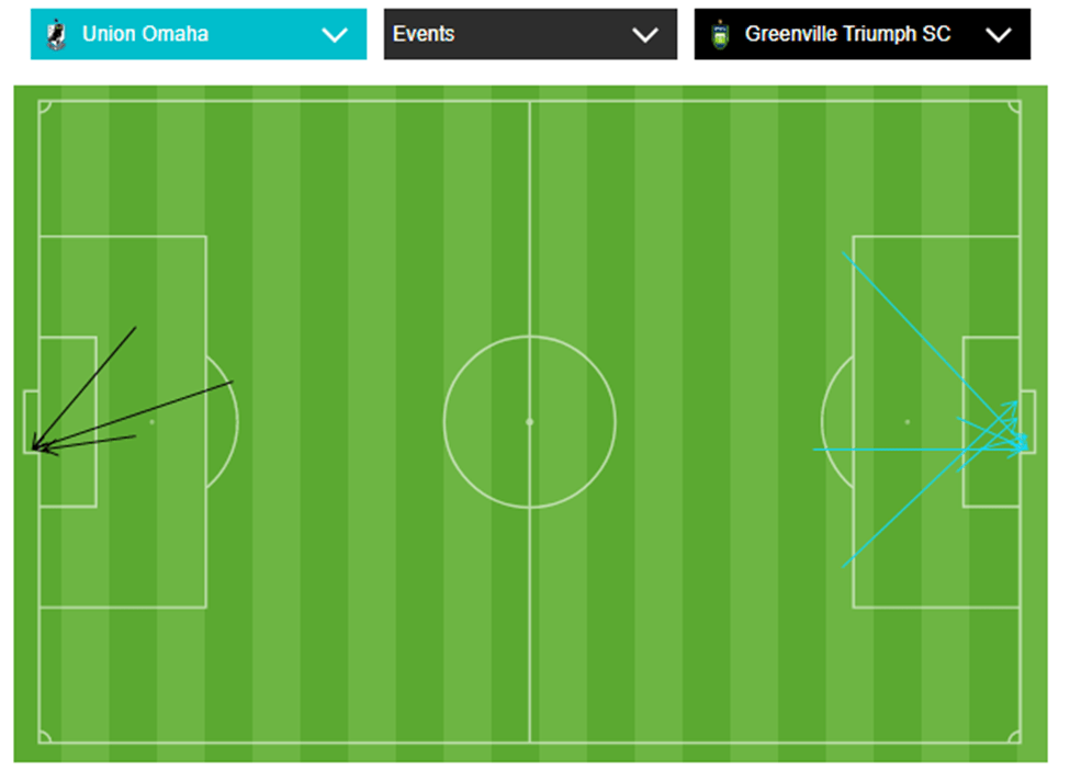 Another difference in this year’s edition of the Greenville Triumph is their eagerness to take shots. Last year’s team finished third in the league with 379 shots. In 2021, Greenville had 125 shots through 10 games, averaging 12.5 shots per game. This year, the club has 153 shots through ten games, almost three more shots per game. With each additional shot comes more opportunities to clean up the rebound, test the goalkeeper, and earn corner kicks off of defensive clearances. They’ll have a tough test ahead with a Union Omaha team that moves around the field well and closes up the shot windows and passing lanes.