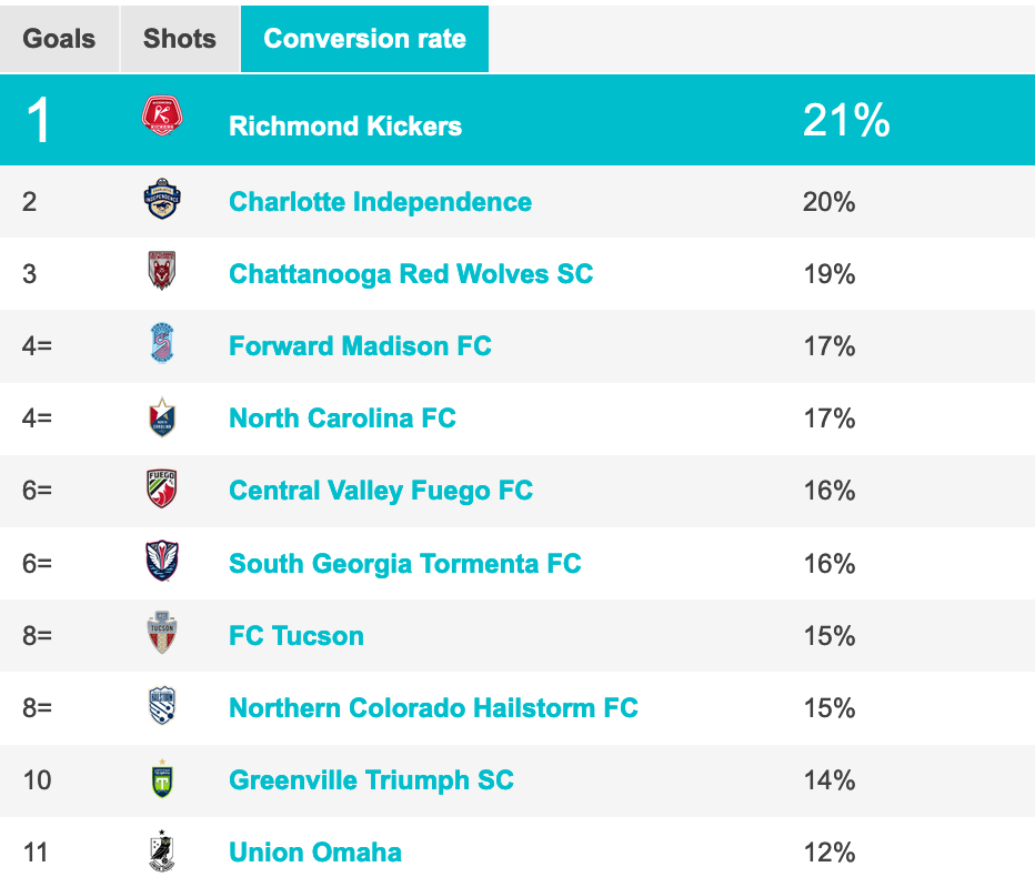 And that’s a worry, because our goal scoring stats …. really aren’t great this year. We have 17 goals, which is more than only Tucson who sit bottom of the table. And that’s partially from how many shots we convert into goals, which looking at the chart below, is the lowest in the league: