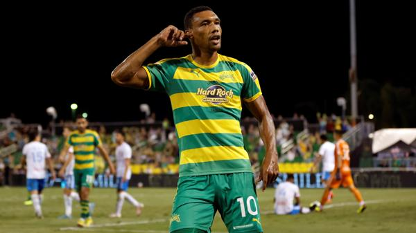 Living abroad also meant that Dos Santos had to become comfortable with himself and even fend for himself. “That was my first time leaving home, leaving my parents, and leaving everything,” he divulged. “You know, it’s hard because I had to learn how to survive, be by myself, and cook for myself. I’ve never been alone for that long. I always had someone like my parents, my brother, my sister, or my friends. Of course, I had my teammates. It was fun there, but when I left the facilities, I would go home and I would just stay there alone. I’d call my parents and my girlfriend, but it’s different. Sometimes you need that person by your side, like when you had a bad day…you can go home and talk with someone and they’ll make you feel better, but I didn’t have that my first year.” His mental toughness allowed him to stay the course. “It was hard for me, but you just have to adapt because if you want to be a professional, it’s what you have to do: make sacrifices.” When his contract in Norway had finished, he had a short spell in Angola before crossing the Atlantic and joining the Rochester Rhinos of the USL. With that signing came more immediate success.