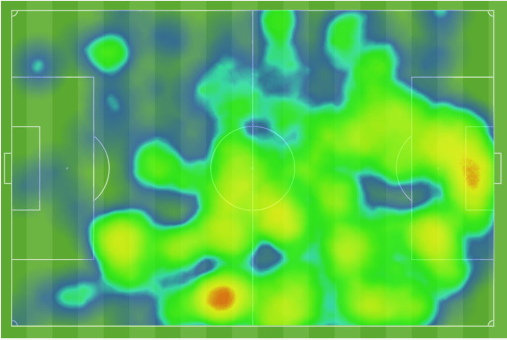 Speaking of impressive defensive performances, how about Tobias deputizing at right back. He led all UO defenders in short passes, duels won, and tackles. His numbers look remarkably similar to a Ferrety performance at right back. Here are some heat maps